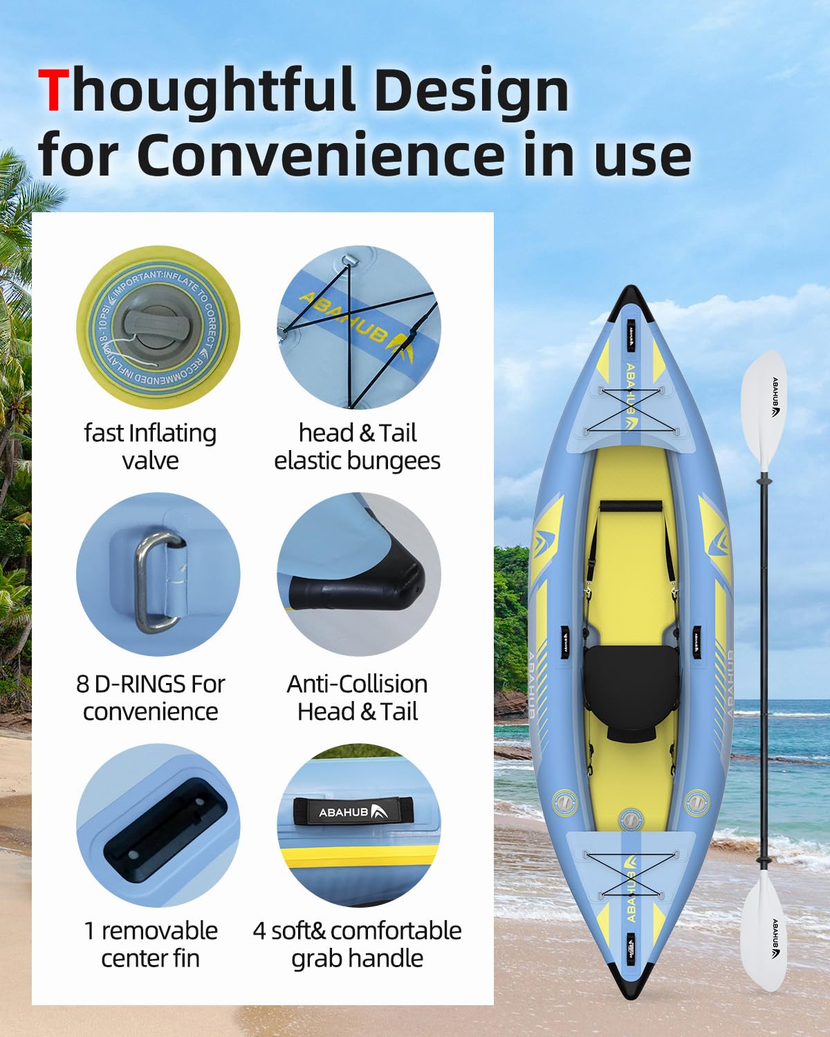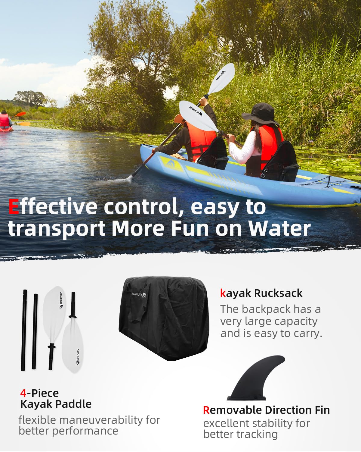 - 【Warum ABAHUB wählen】 Dieses aufblasbares Kajak ist aus hochwertigen Materialien hergestellt und wird mit ausgezeichnetem Zubehör. Es ist zu einem erschwinglichen Preis erhältlich. Wir stellen seit über 10 Jahren Kajak her und stehen zu der Qualität unserer Kajaks. Abahub bietet eine 12-monatige Garantie, wenn Sie Fragen zu unseren Produkten haben, zögern Sie bitte nicht, uns zu kontaktieren