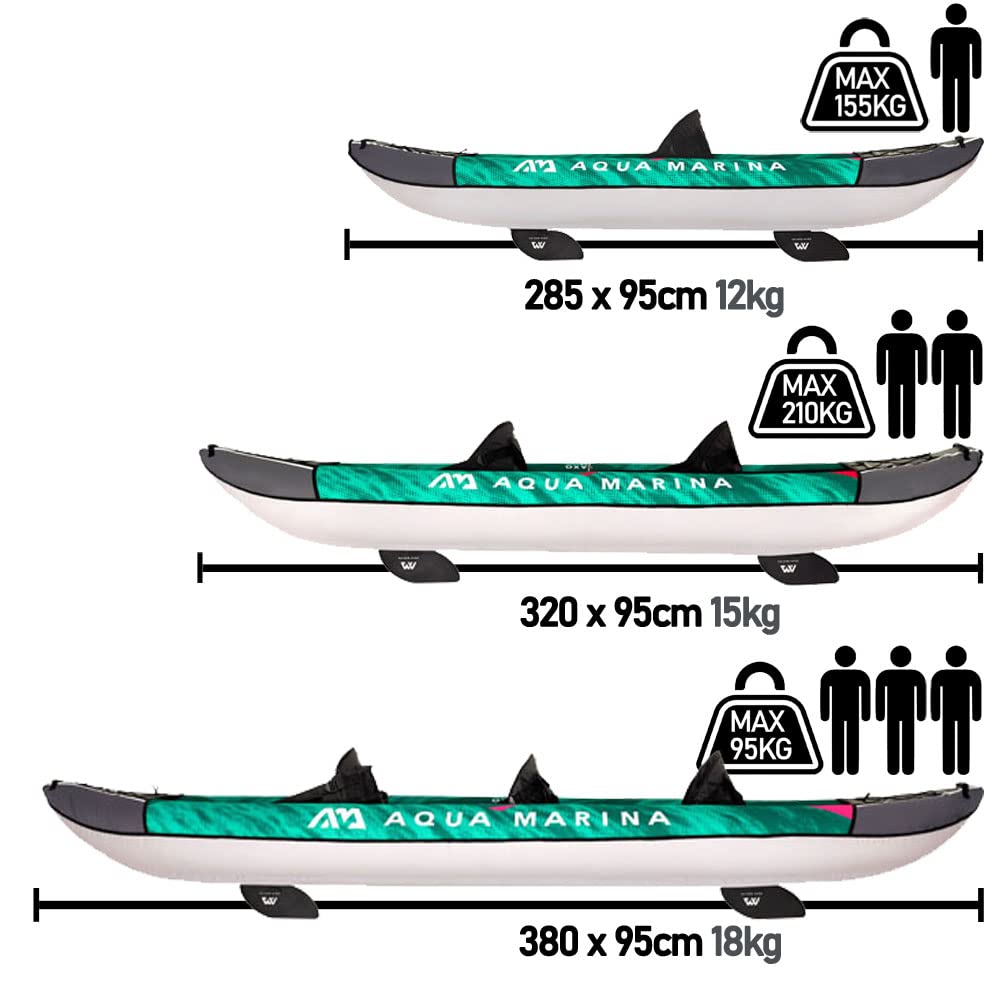 Aqua Marina , 1er Kajak aufblasbar im Set Laxo-285 2022 9‘4“ 1 Person Paddelboot Kanu mit Paddel, Pumpe, Rucksack 285 x 90 cm